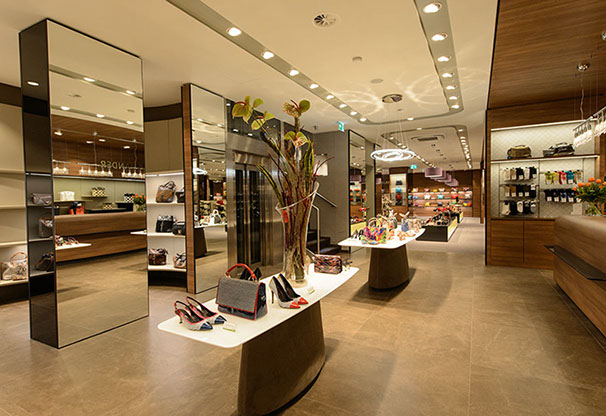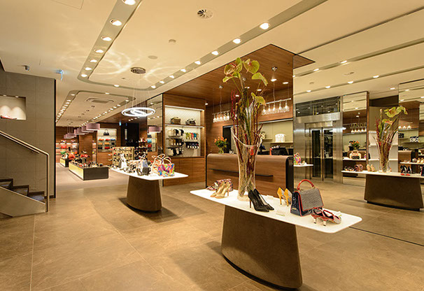In Zusammenarbeit mit den Innenarchitekten von Inarchi Design Studio ist hier eine einzigartige Geschäftsfläche entstanden, die auf zwei Geschossen des Gründerzeitgebäudes in die Welt der Schuhe einlädt.