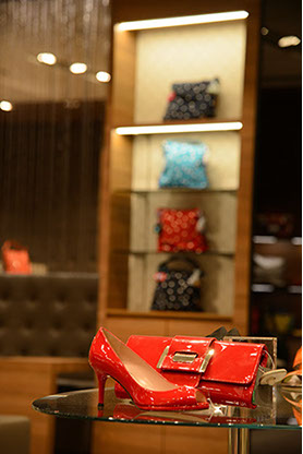 Neben hochwertigen Schuhen werden die Damen auch gerne einmal mit einem Glas Sekt und die Herren mit einem Glas Whiskey verwöhnt. Von der Herrenabteilung im ersten Stock hat man einen prachtvollen Blick über den Graben.