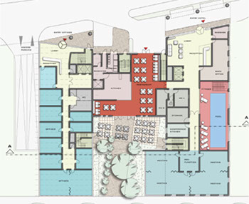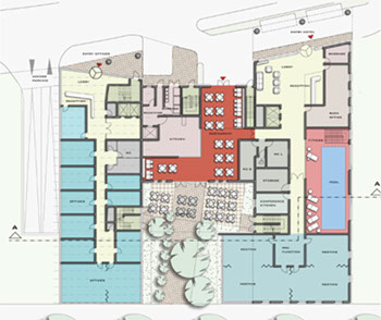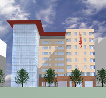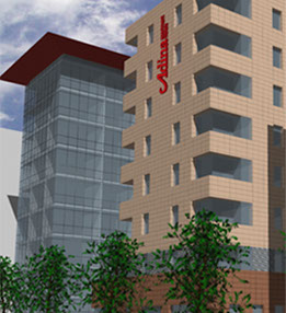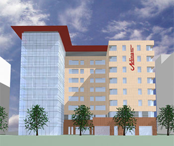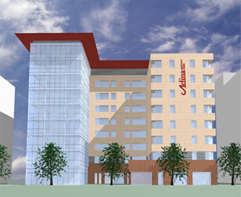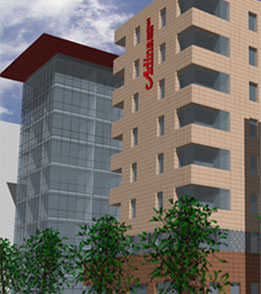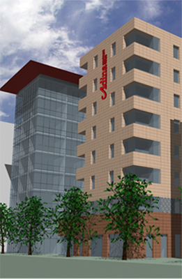 Das Adina Appartement Hotel wurde im Zentrum von Frankfurt am Main geplant. Das 3* Hotel mit Vollservice sollte im Westhafen, einem Seitenarm vom Main in City Nähe, gebaut werden.