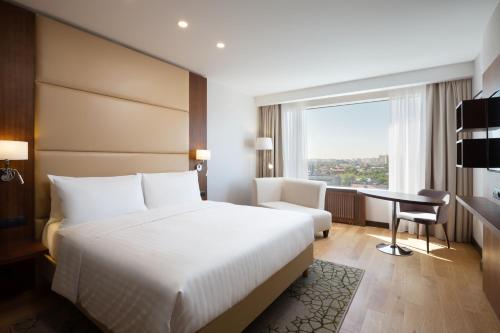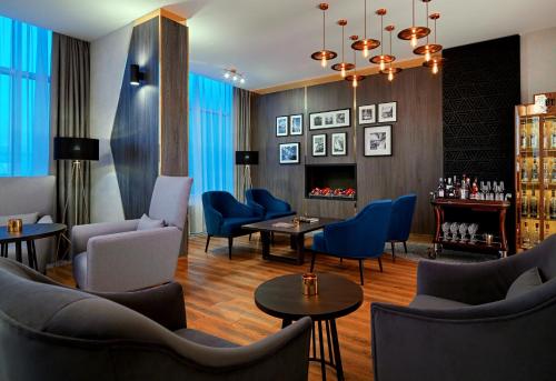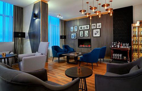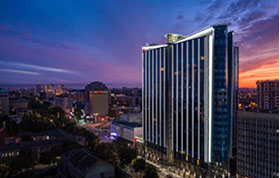 Hotel: Die atemberaubende Eingangshalle mit einem Atrium über die gesamte Gebäudehöhe führt den Besucher in Restaurant, Bar, Business Center und verschiedene Verweilbereiche. Im 1. OG befindet sich ein großzügiger Konferenzbereich mit Ballsaal. Die Geschosse 5-14 beherbergen die Gästezimmer und Suiten und die vier darauf folgenden Geschosse bieten Appartements an. Den Abschluss bilden im 20. und 21. Geschoss ein Specialty Restaurant sowie die Executive Lounge mit ausgezeichnetem Blick über die Stadt. Ein Fitness Club im 3. Geschoss rundet das Angebot ab.