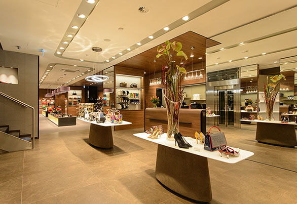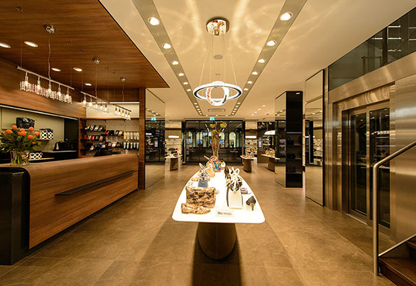 In Zusammenarbeit mit den Innenarchitekten von Inarchi Design Studio ist hier eine einzigartige Geschäftsfläche entstanden, die auf zwei Geschossen des Gründerzeitgebäudes in die Welt der Schuhe einlädt.