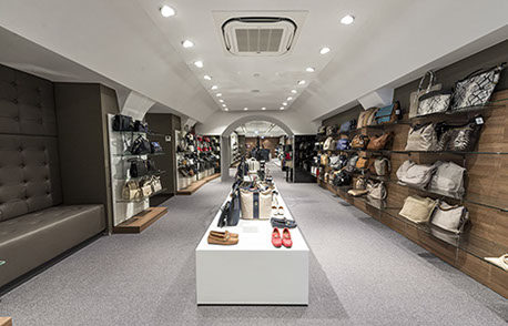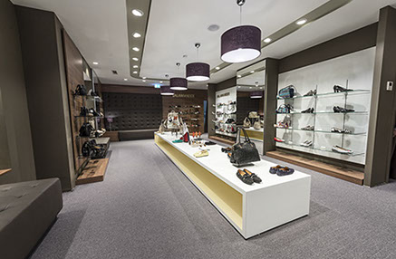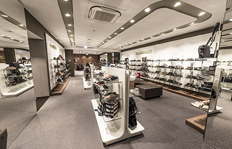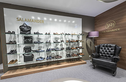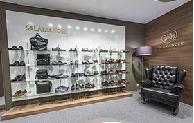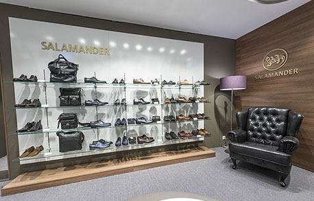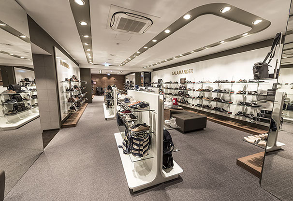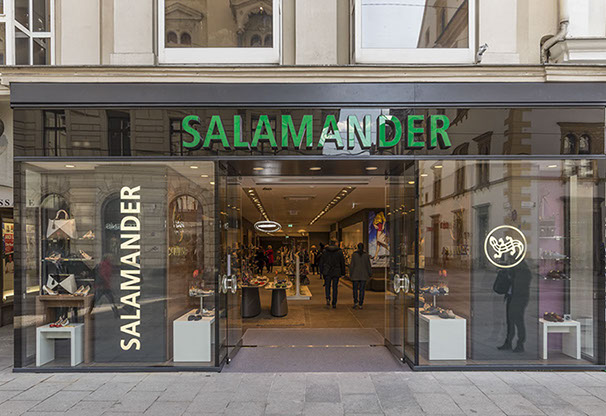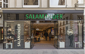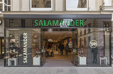 Die Salamander Filiale in Graz liegt am Beginn der Herrengasse, direkt am Hauptplatz und öffnet sich mit einer Seite zur Altstadtpassage.